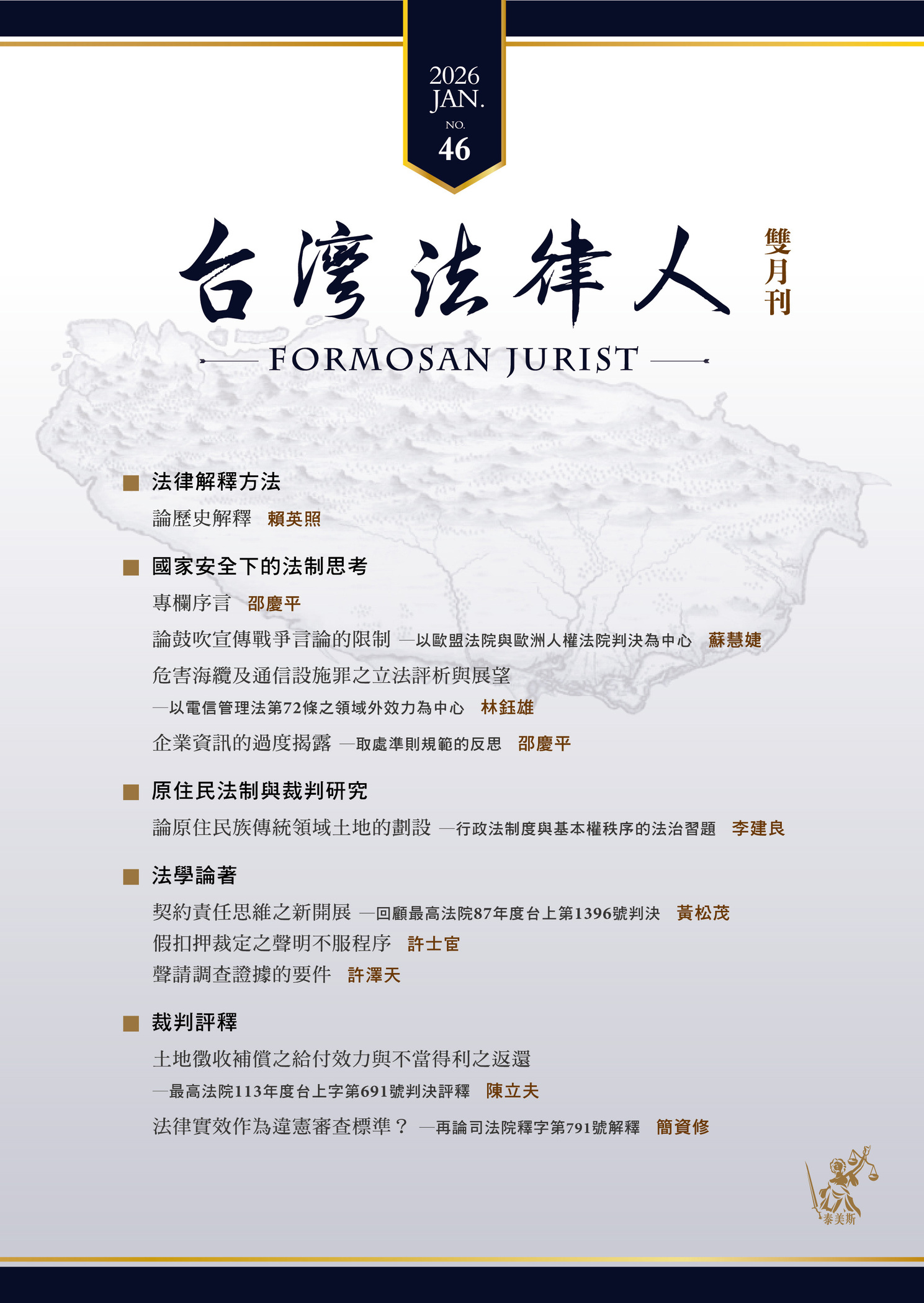 若欲購買1本以上請向《台灣法律人》客服信箱聯繫