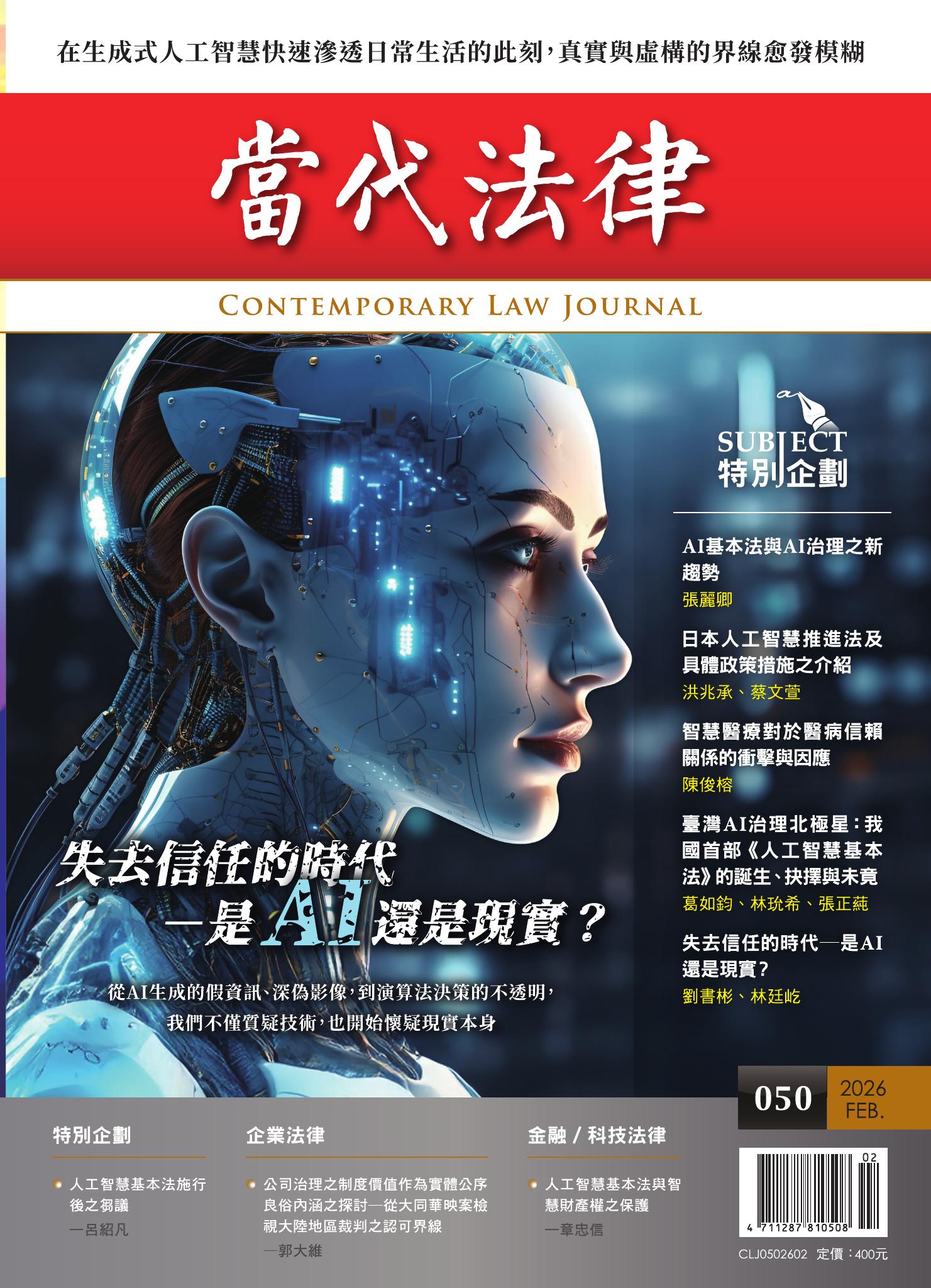 當代法律 第50期 目錄
