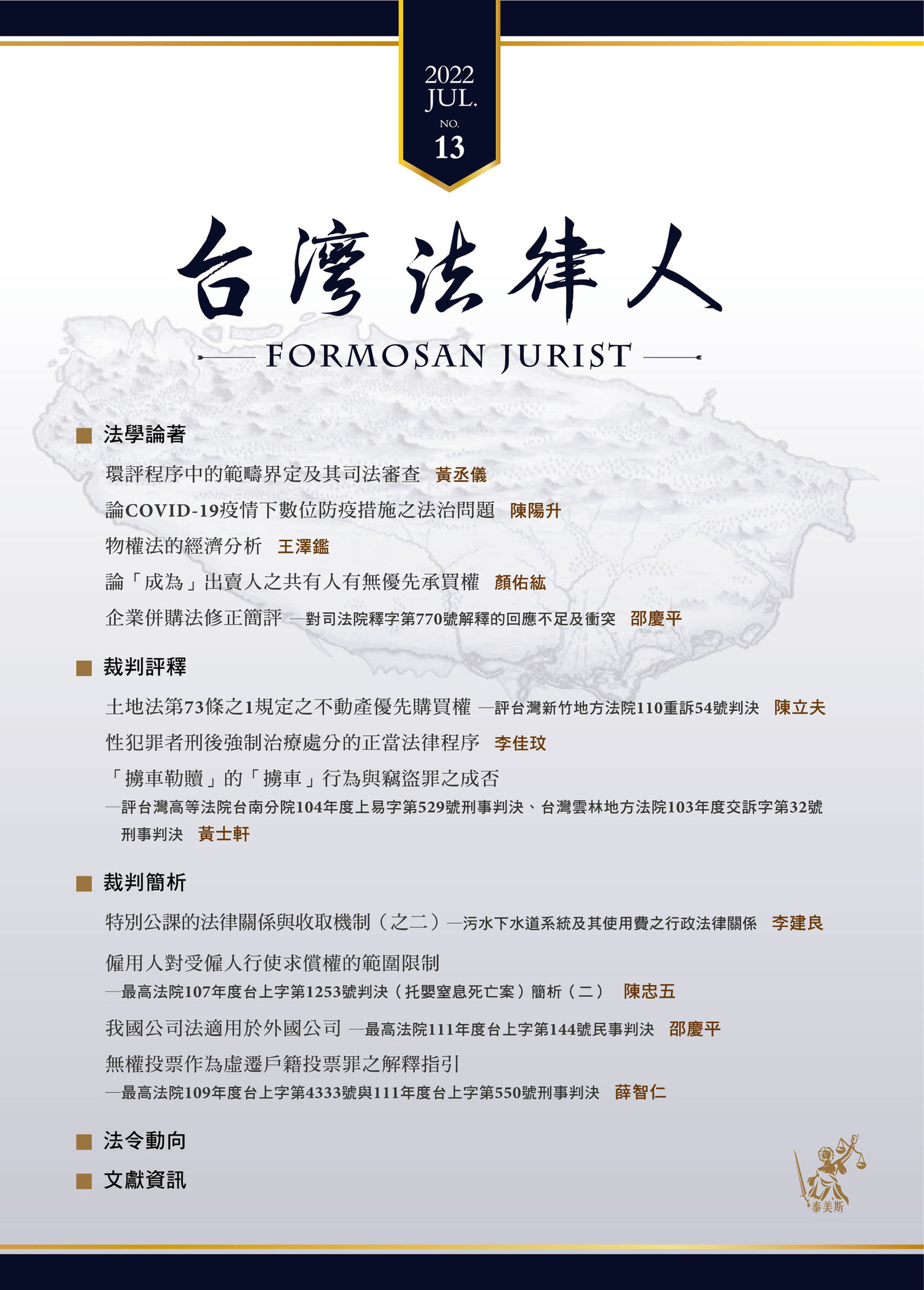 《台灣法律人》第13期目錄 ISSN:2789-4908